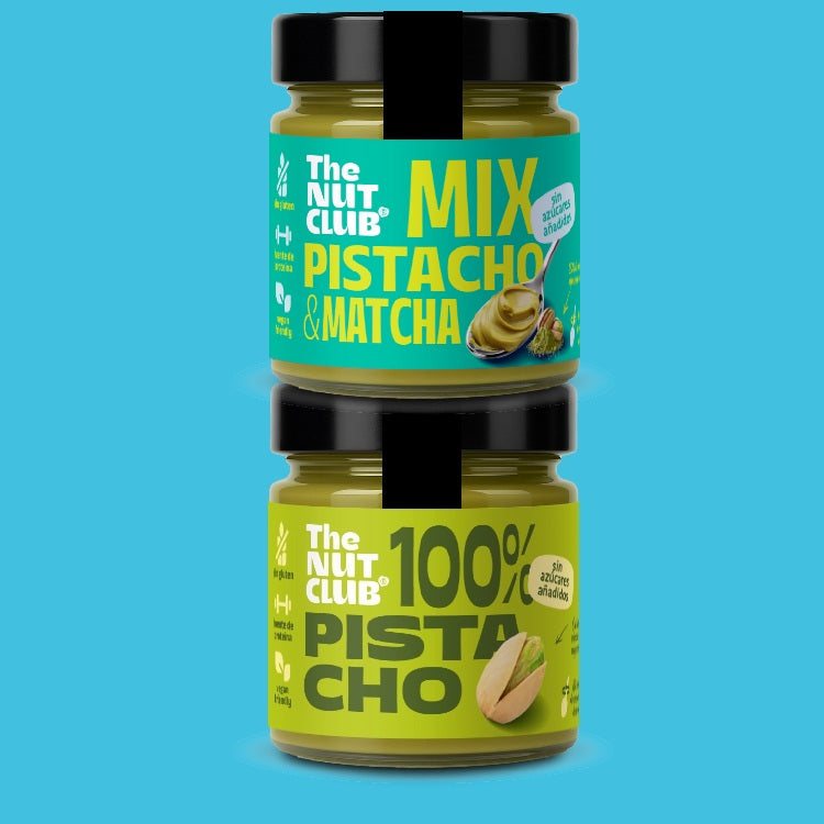 Notre crème de pistache intense accompagnée d’une autre crème The Nut Club au choix.