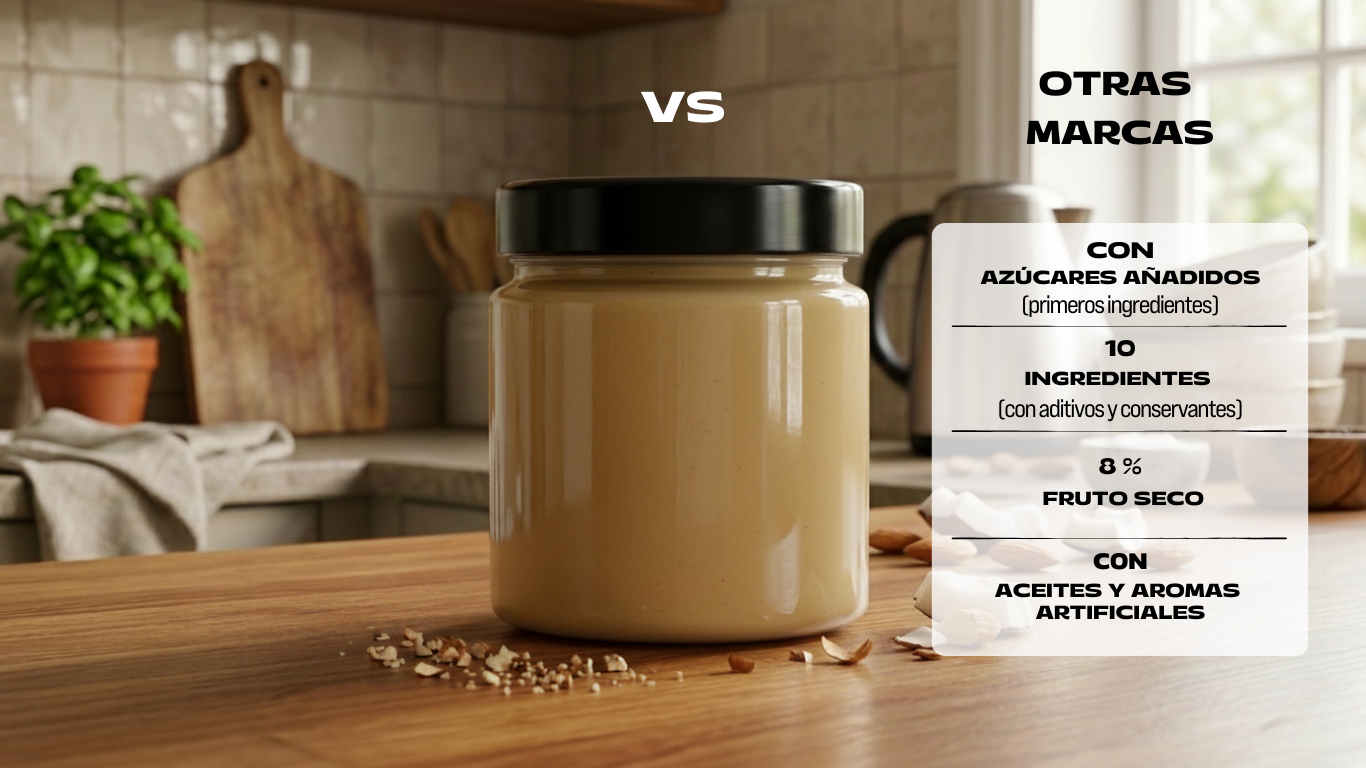 Nuestras cremas no contienen conservantes ni aditivos, por eso te recomendamos guardarlas en un lugar fresco y seco, alejado de la luz directa y de fuentes de calor. No es necesario conservarlas en la nevera, aunque si lo haces, la textura puede volverse algo más densa (sin afectar al sabor ni a la calidad).