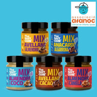 Pack solidario con 5 cremas Creations (avellana y cacao, almendra y coco, almendra y canela, crema blanca de avellana y almendra y anacardo y algarroba). 2€ destinados a la Associació de Familiars i Amics de Nens Oncològics de Catalunya (AFANOC)